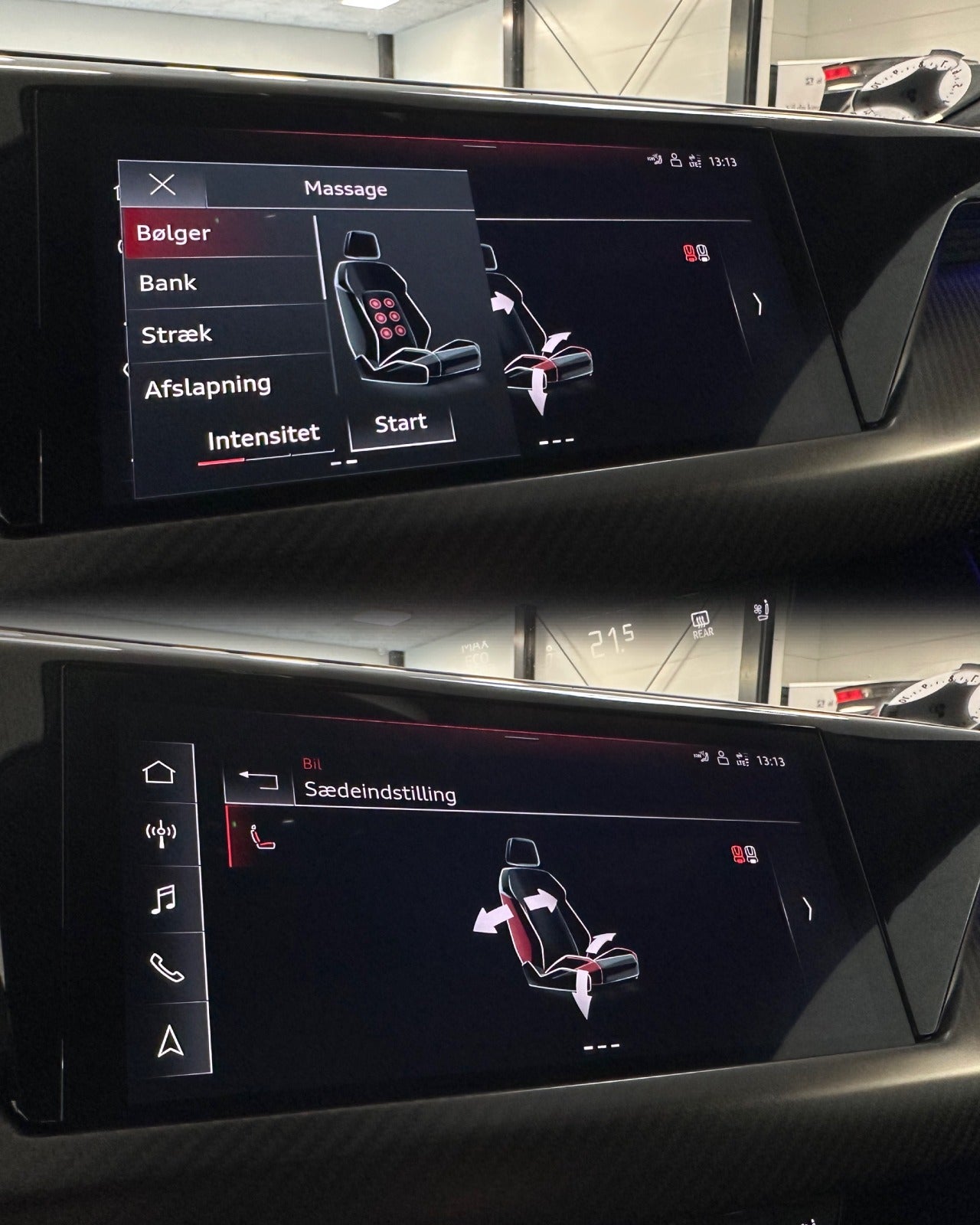 kørecomputer, digitalt cockpit, multifunktionsrat, læderrat, læderindtræk, sportssæder, el indst. forsæder, el indst. førersæde m. memory, el-justerbar lændestøtte, massage i forsæder, splitbagsæde, mørk loftbeklædning, ambiente belysning, 20" alufælge, glastag, el-klapbare sidespejle m/varme, led kørelys, matrix led forlygter, laser forlygter, dynamisk blinklys, mørktonede ruder i bag, varme i rat, 4 zone klima, elektrisk kabinevarmer, varmepumpe, nøglefri adgang, nøglefri tænding, adaptiv fartpilot, aut. nedbl. bakspejl, sædekøling, sædevarme, varme i bagsæde, 4x el-ruder, el betjent bagklap, fod betjent bagklap, adaptiv undervogn, luftundervogn, elektrisk parkeringsbremse, headup display, trådløs mobilopladning, dab radio, navigation, musikstreaming via bluetooth, android auto, apple carplay, usb-c tilslutning, regnsensor, alarm, automatisk parkeringssystem, 360° kamera, bakkamera, parkeringssensor (bag), parkeringssensor (for), dæktryksmåler, træthedsregistrering, skiltegenkendelse, isofix, lygtevasker, automatisk lys, fjernlysassistent, 6 airbags, esp, vognbaneassistent, blindvinkelsassistent, automatisk nødbremsesystem, auto hold.